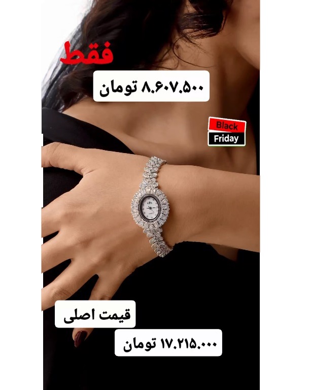 خرید ساعت نقره BK212 با نگینهای برلیان و باگت – حراج ویژه بلکفرایدی