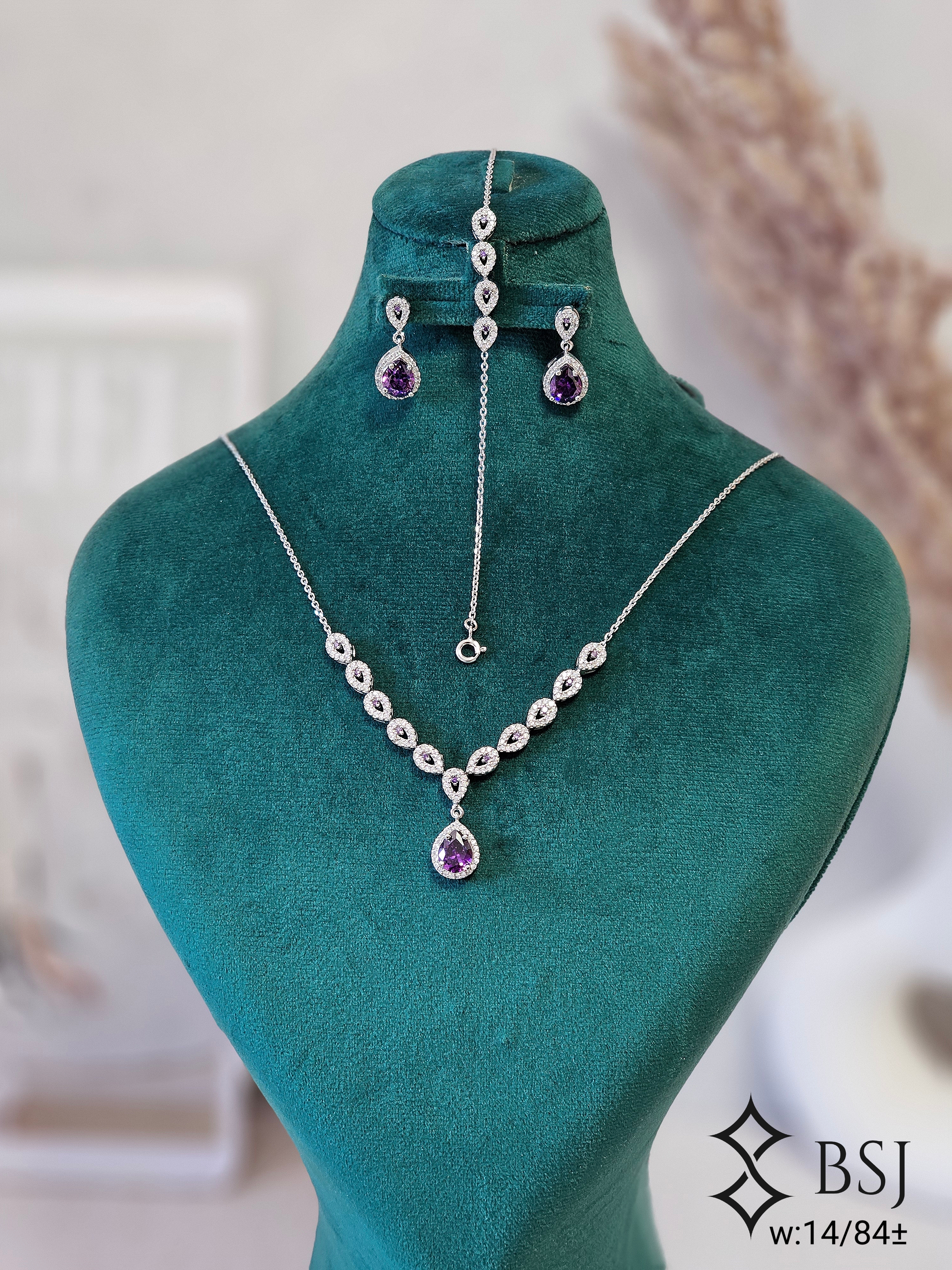 سرویس نقره GT118 یک مدل ظریف، سبک و زیباست که با نگینهای برلیان اتمی طرح اشکی طراحی شده و جلوهای بسیار لطیف، درخشان و زنانه ایجاد میکند. فرم اشکی نگینها در کنار زنجیر ظریف و طراحی مینیمال، این سرویس را به گزینهای عالی برای استایل روزمره شیک، مهمانیهای ساده و حتی ترکیب با لباسهای مجلسی سبک تبدیل کرده است.