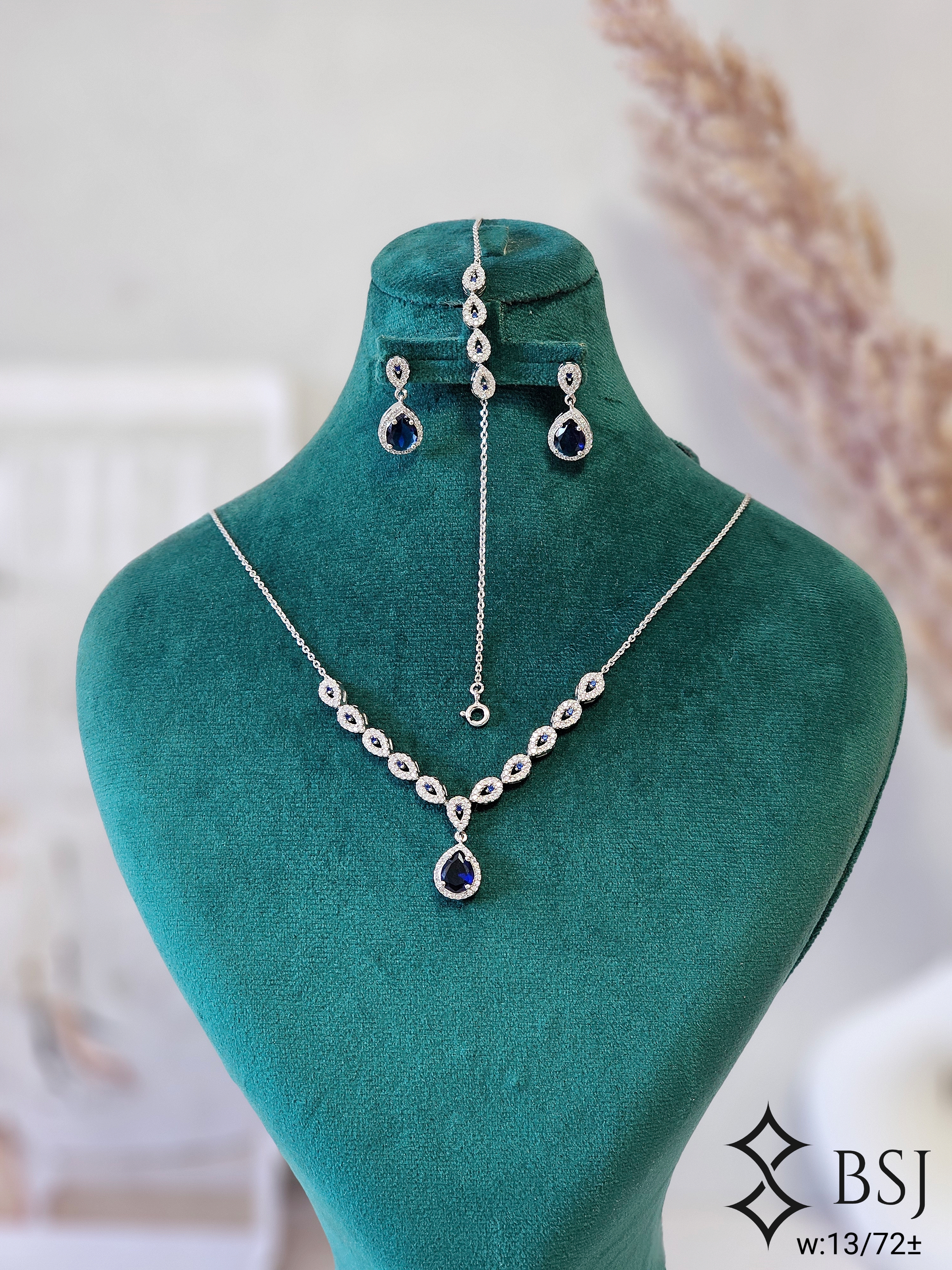 سرویس نقره GT118 با نگین برلیان طرح اشکی؛ ظریف، زنجیری و مناسب استایل دخترانه و زنانه