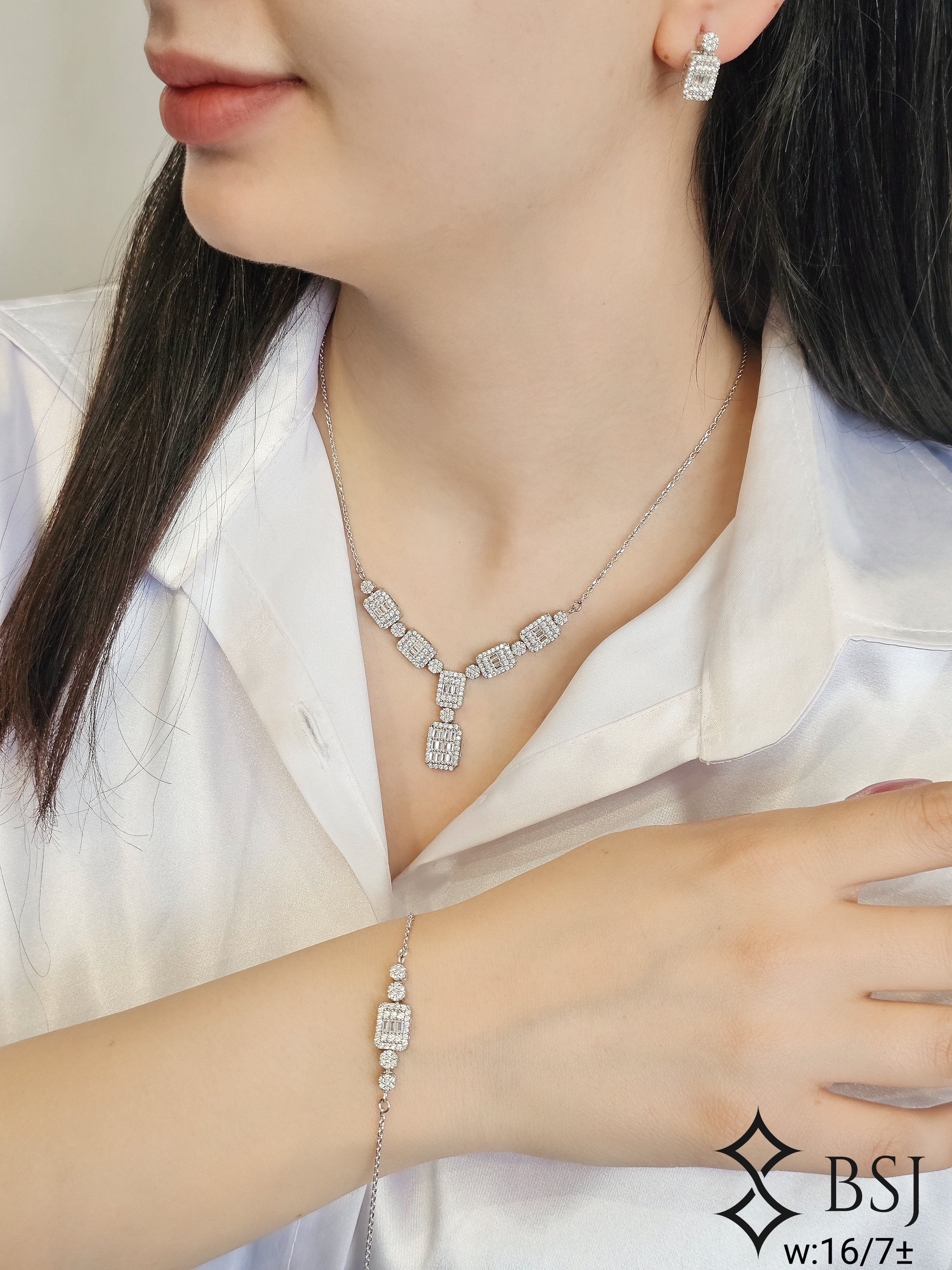 سرویس نقره GT167 نگین برلیان و باگت | ظریف، زنجیری و شیک زنانه، دخترانه و مناسب عروس