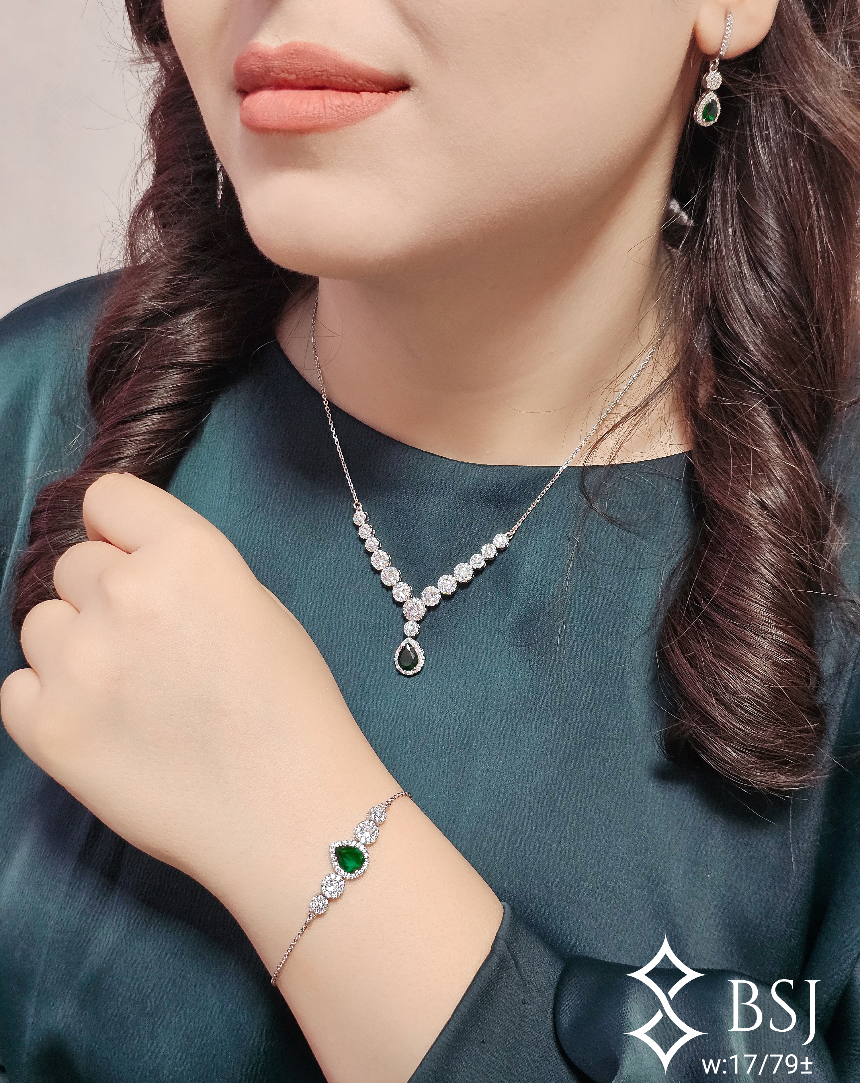 سرویس نقره GT170 نگین برلیان | ظریف، زنجیری و شیک زنانه، دخترانه و مناسب عروس